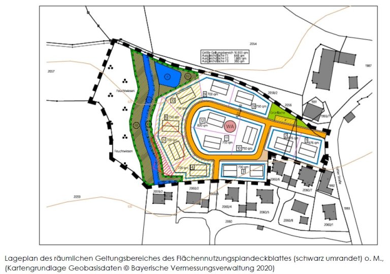Die Verarbeitung personenbezogener Daten erfolgt auf der Grundlage der Art. 6 Abs. 1 Buchstabe e (DSGVO) i. V. m. § 3 BauGB und dem BayDSG. Sofern Sie Ihre Stellungnahme ohne Absenderangaben abgeben, erhalten Sie keine Mitteilung über das Ergebnis der Prüfung. Weitere Informationen entnehmen Sie bitte dem Formblatt „Datenschutzrechtliche Informationspflichten im Bauleitplanverfahren“ das ebenfalls öffentlich ausliegt.