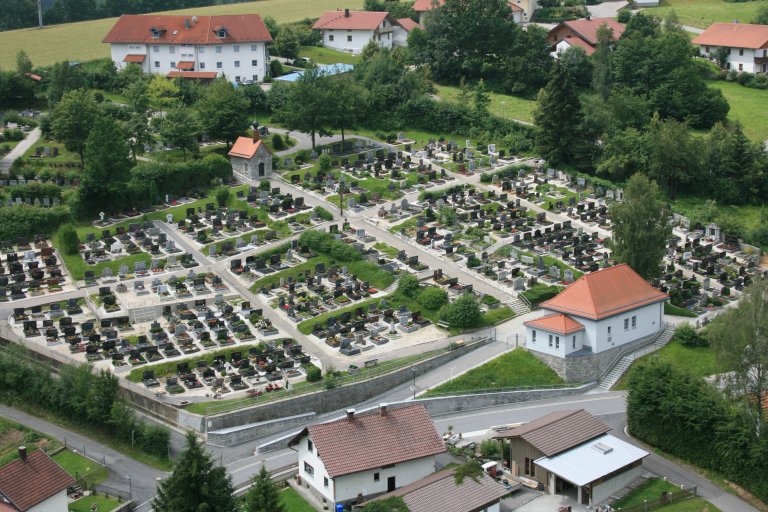 Der Friedhof befindet sich an der Berginger Straße und ist zu unterscheiden zwischen dem alten Friedhofsteil (zwischen Leichenhaus und Kapelle) und dem neuen Friedhofsteil.